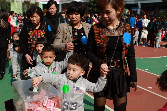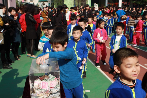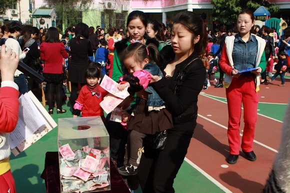 活动中我们还进行了捐款献爱心活动,让孩子们知道我们快乐的同时,世界的其它角落还有一些孩子在挨饿、生病受苦,我们献出的小爱心,汇聚起来就可以让他们跟我们一样过上快乐的生活。活动中共募集爱心款总园:32268元;分园:20292.1元,该善款将用于瓯海区“慈善一日捐”活动和贫困山区结对帮扶活动。