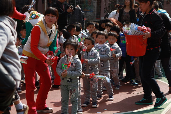 3月8日上午,第103个国际劳动妇女节到来之际,新桥第一幼儿园总、分园内热闹非凡,列队迎接家长小朋友的腰鼓队给节日增色不少。小朋友们在欣赏完一段精彩的腰鼓表演后,“妈妈,节日快乐”新桥一幼庆三八亲子活动拉开序幕。小小班的孩子们给妈妈贴上腮红,送上稚嫩的节日问候,妈妈心中的甜蜜淌到脸上溢满灿烂的笑容;小班的孩子给妈妈送上康乃馨;中班的孩子给妈妈送上手工制作的爱心,围一条围巾,化一点唇彩;大班的孩子叼着花送到妈妈的嘴里。这一系列的亲子游戏和互动培养了孩子们的爱心孝心,让家长感受孩子的成长、孩子的懂事。