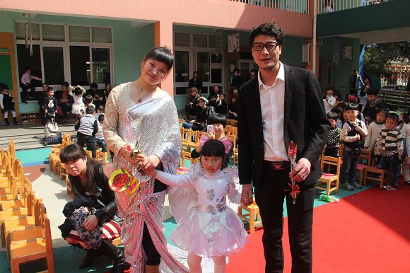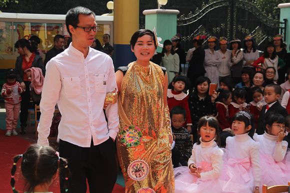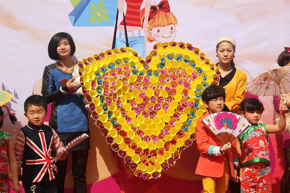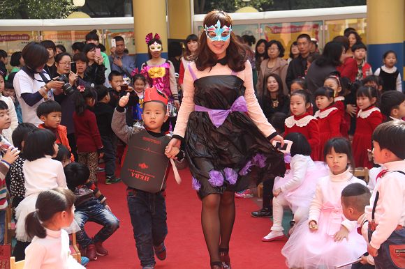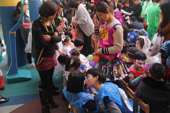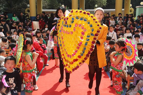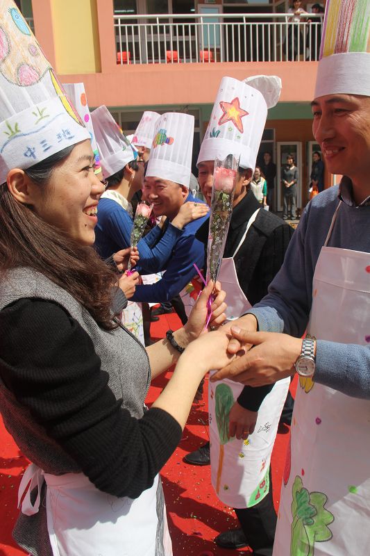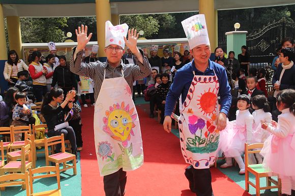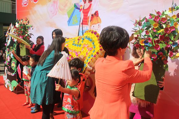 8:00—10:00各班在自己教室中如火如荼地进行着亲子创意美术,每个班级自选主题,开拓思路,用各种材料和方法围绕主题进行创意美术。活动中,有在雨伞上作画“小城雨下”,有用彩纸和鸡蛋盒做成308朵玫瑰,拼凑出一颗爱心的“春暖花开”,更有班级出动了全班的爸爸,围上围裙,为所有的妈妈献上了精彩纷呈的节日祝福等等别具创意的主题创作!