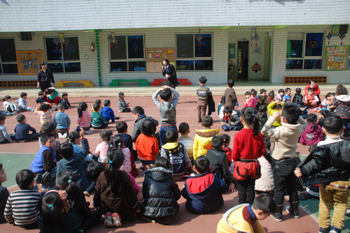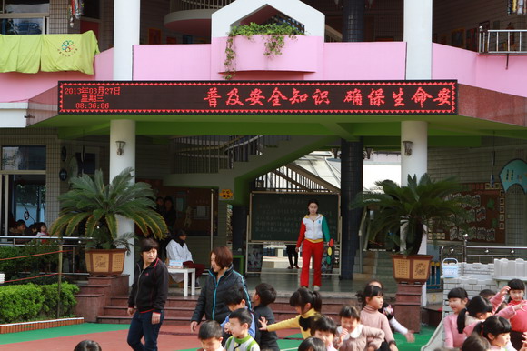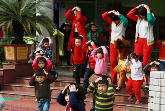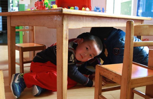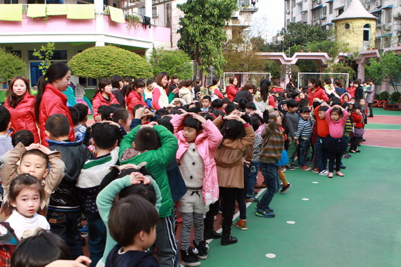 为了全面提高老师和小朋友们对自然灾害和突发事件的应急、自救能力,进一步增强防震意识,地震发生时,能快速、高效地将小朋友疏散到安全地带,防止踩踏等事件的发生,举行了以地震逃生和人员疏散为内容的应急演习活动。3月27日下午,随着一阵急促的警报声,演习开始了。孩子们在老师的引导下,纷纷选择桌子、厕所管道等地方进行避震,“抱头”、“闭眼”、“蹲下”,老师们不时的提醒着孩子们。两分钟后,随着一声长哨声再次响起,孩子们在老师的带领下,快速有序地疏散到操场。演习的过程紧张而有序,通过本次演习,老师和小朋友们都掌握了正确的逃生要领,增长了防震知识,进一步增强了防震意识,同时也提高了老师和孩子们的自护自救能力。