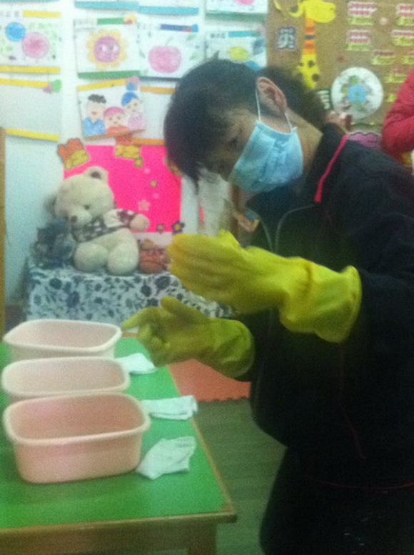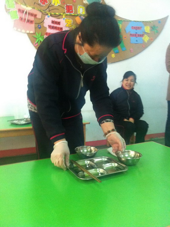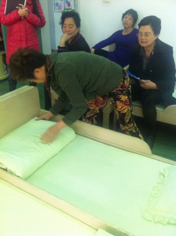 4月8日,澳美加实验幼儿园,举行了一场保育员技能比赛。该场比赛本着以普及和提高保育员技能更标准化、规范化为目的。在擦桌子、摆碗筷、铺床方面,再现她们在规定时间内完成正确的操作要求。