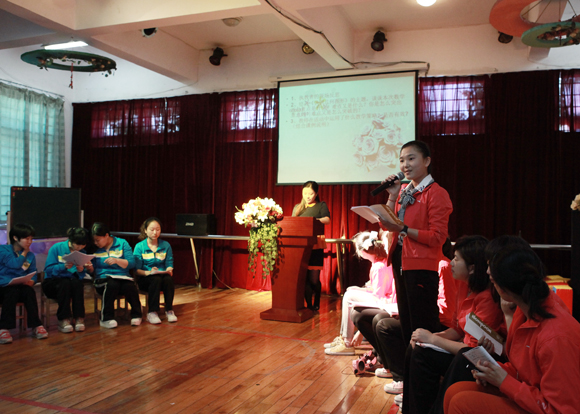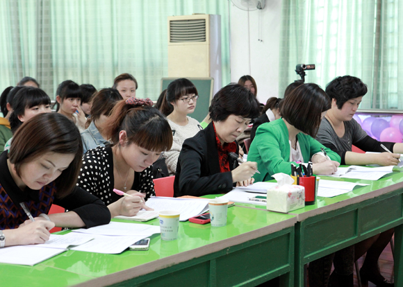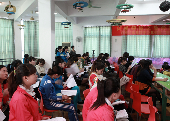 本着分享教育资源、分享教育理念、分享教育策略、分享职业精神的原则,展示新教师优质研讨课。2013年4月15日上午,红都幼儿园迎来了集团中心教研组本学期的第三次活动。一直以来,我们集团的各位老师在中心教研组徐老师、叶老师的带领下,大家感受到了实实在在的成长,也充分体会到了教研活动的魅力与快乐。本次教研活动主题为:“科学领域之计算教学活动教学策略探究”,参加本次活动的有我们集团的领导、集团属下各幼儿园的业务园长和集团所有的新教师,共48人。
