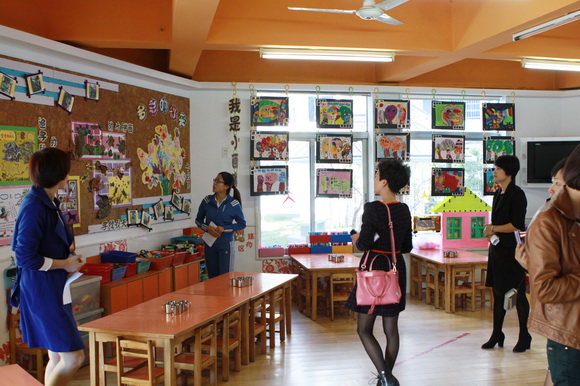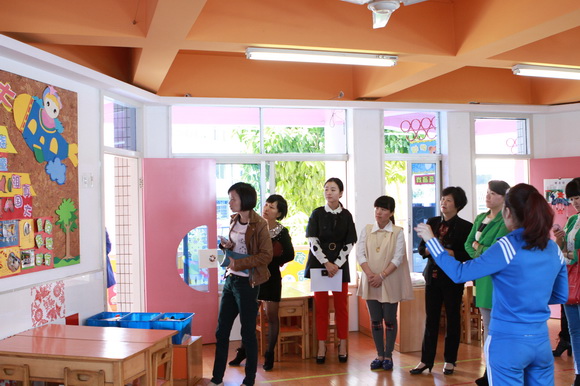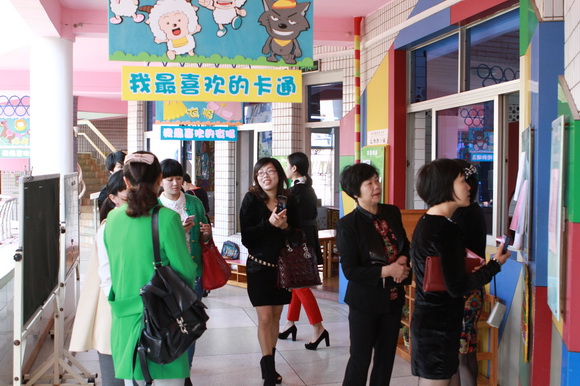 2013年10月24日上午9:00,各幼儿园园长在教师发展中心领导周慧静老师的带领下,来我园进行主题墙创设现场观摩评比活动。首先,听取我园主题墙创设的情况报告;其次,到各班级现场查看主题墙饰设计。各班教师根据主题墙评比要求,结合本班主题教学活动的运行方向,认真、热情地向领导及专家讲解班级主题墙创设的具体形式及内容。各班主题墙创设充分体现内容、材料的丰富性;形式、方法的艺术性与趣味性;师生、家长的互动性;主题创设的动态性。