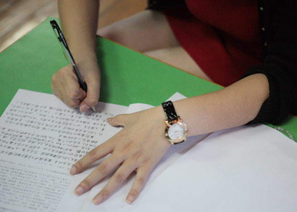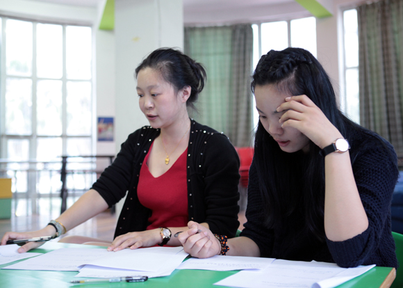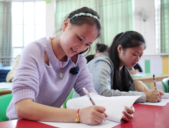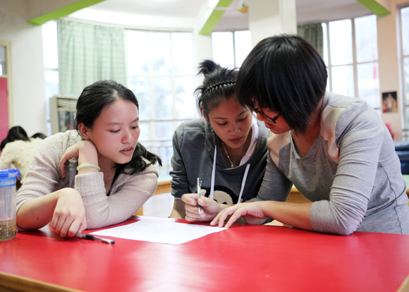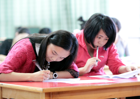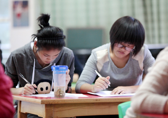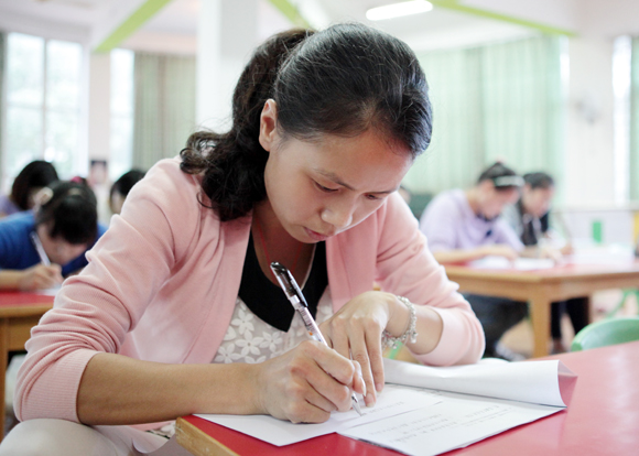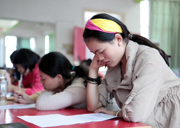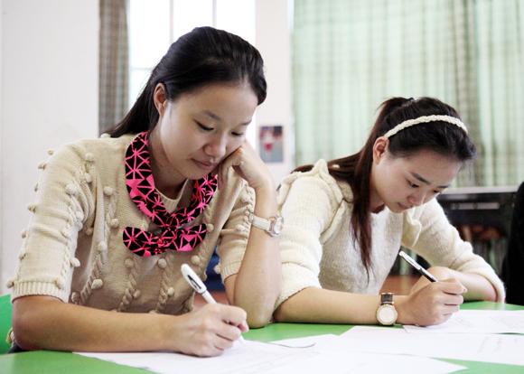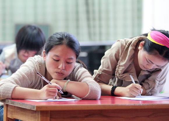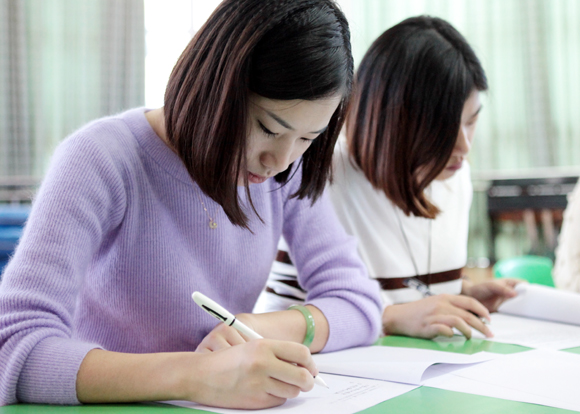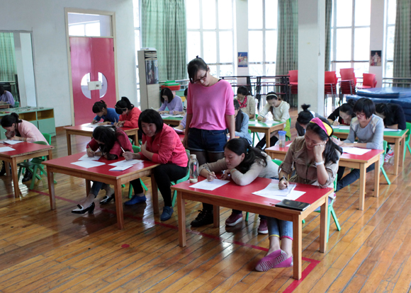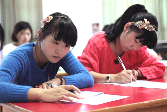 书面考试完毕,分组进行研磨