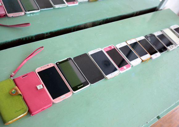 集中手机——为体现考试的严肃性