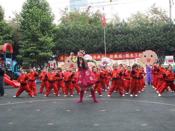 时间在一分一秒地过去,小朋友们用渴望的眼睛看着我,我心里非常的激动。十点左右终于见到了他们的身影,只见彩虹糖姐姐就像电视中的那么美丽、可爱,讨人喜欢,我好想过去和她留个合影啊。可是理智告诉我,我要镇定,要对小朋友负责,于是,我就组织小朋友们,在不影响彩虹糖姐姐和大班小朋友们的情况下,让他们也一饱眼福。只见彩虹糖姐姐带领着大班的小朋友们在美妙又欢快的音乐声中翩翩起舞,好像是一只只美丽的蝴蝶在轻柔地飞翔着,把我们都带进了一个美的世界。