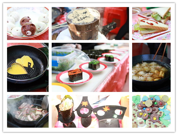 美食节以操场为场地,按班级分摊位。老师和家长们都对自己班的摊位进行了精心的装扮。上午8:30,家长们陆陆续续端来自己制作的精致菜肴,色、香、味俱全、造型迥异。现场还有烤牛排、炸薯片、煮鱼丸、关东煮,烧烤等,孩子们在家长的带领下穿梭在各个摊位之间享受饕餮盛宴,一派其乐融融的景象。