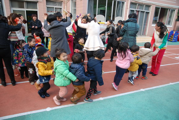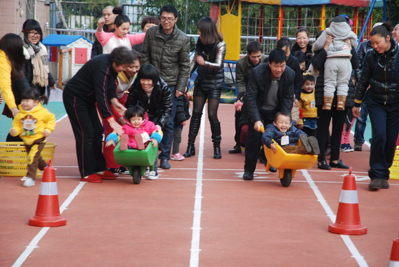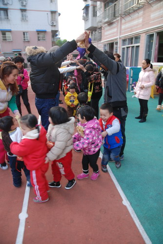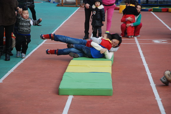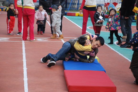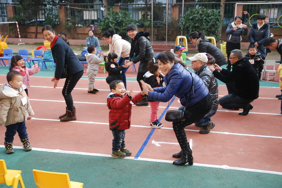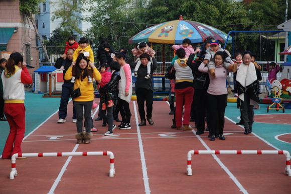周四下午,我园小小班段举办了亲子运动会。虽然这些项目只是简单的小游戏,但这样的活动都能够让大家回到欢乐的童年时光,并感受到与孩子们玩在一起、笑在一起的快乐。此次活动主要是注重培养孩子与家长协作精神,使得每一位家长和孩子成为最亲密的搭档,家长与孩子们在共同的努力下,合作愉快地完成每一个比赛项目。而通过一系列的游戏活动,不仅增强了宝宝体质,也增强了孩子们对体育活动兴趣性和动作的协调性、灵活性;使家园联系更为紧密、关系更为融洽,同时也提升了您们家长的育儿观念。我们运动口号是“爸爸妈妈齐支援,看我争第一”