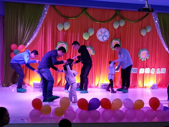 2014年3月6日下午13:30,温州市妇联实验幼儿园“爱•在春天”三八主题活动在朱翊翊老师悠扬的笛声中拉开了序幕……首先由小班爸爸们率先登场,带来了精彩的歌曲联唱,爸爸们激情昂扬的歌声瞬间炒热了全场气氛,赢得了宝贝们和妈妈们热烈的掌声。紧接其上的是辣妈们出场了,小小班妈妈们活力四射的动感体操,小班妈妈、奶奶们带来的“古风古韵”T台旗袍秀,中班妈妈们带来的围巾秀,展现出了妈妈们不同于平常的魅力和风韵,美丽的妈妈们在台上的一颦一笑,都赢得在场观众的由衷赞叹。接下来紧随其后的小小班亲子节目《爸爸去哪儿》,熟悉的旋律,赢得在场所有人的共鸣,情不自禁的唱响,将活动推向高潮,颠覆全场。中班爸爸们的“G-J”舞蹈秀更是将全场气氛拉到最高点,爸爸们极具创意和活力的搞笑舞蹈,让在场所有观众都跟着他们动起来!最后压轴出场的大班爸爸们和妈妈们分别为我们表演了歌曲联唱和带动跳,果然让所有观众眼前为之一亮,赢得了阵阵掌声。最后的送祝福环节在各自的班级进行,当孩子们把做好的礼物送给妈妈和奶奶时,同时还送上一句:“你辛苦了,妈妈(奶奶),我爱你!”孩子真情的话感动了许多的大人,看到孩子们真挚的情感表达,有的妈妈激动地流下了幸福的泪花。
