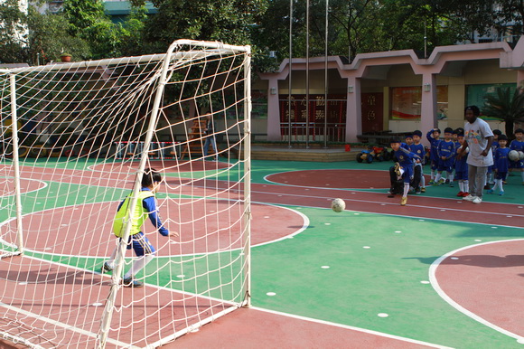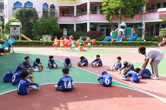 借此好机会,秉承我集团“快乐学英语,快乐说英语”的特色宗旨,我们用一场有意义的足球活动把孩子们联系在了一起,让孩子们自己去体验活动所带来的乐趣和自信,而每次活动的顺利开展都也给我们老师带来了分享快乐的喜悦,因为孩子开心,我们就快乐。