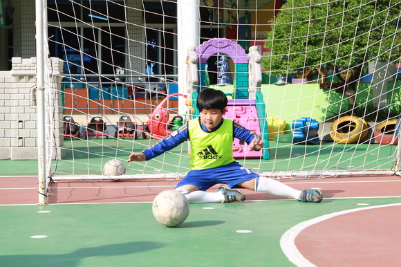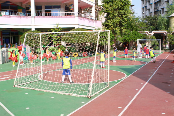 从Warm-up到Practice,孩子们个个斗志昂扬,不管是绕杆跑还是点球守门,个个都显示出自己超凡的足球功底,镜头前的他们处处散发着不畏惧勇往直前的个人魅力,最后到幼儿龙争虎斗的PK环节了,那是别提有多少的激动人心。“Come on, come on.”“Go go go”场外的小美女啦啦队们,晃动着花球,为场上的小运动员们呐喊助威,最后在一方成功把球踢入球门后的哨声中结束了我们的活动。说起我园的足球队,那可是了不得的,曾多次出征外市去参加省市比赛,还过不少的奖呢。