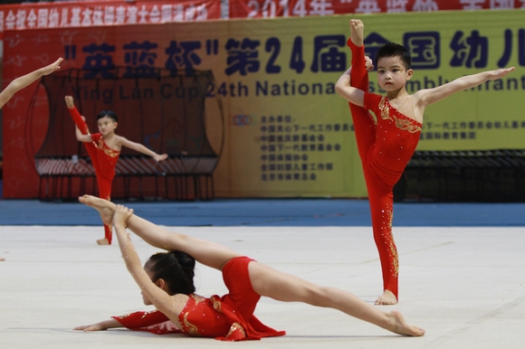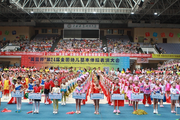 5月25日,由中国关心下一代工作委员会、中国宋庆龄基金会、中国下一代教育基金会、中国体操协会、全国妇联儿童工作部、北京市体育总会主办,英蓝国际教育集团、中国关心下一代工作委员会幼儿园基本体操促进会承办的“英蓝杯”第二十四届全国幼儿基本体操表演大会在湖南长沙中南林业大学体育馆圆满落下帷幕。来自全国各省、市、自治区、各行业体协等共计56个基层幼儿园代表队和特邀泰国体操协会代表队参加了本次大会,孩子们的平均年龄不超过七岁。大会设幼儿基本体操甲组自编操、幼儿乙组花样团体操和幼儿蹦床等项目。经过4天精彩激烈的角逐,我们新桥一幼体操队的小朋友,获得了幼儿基本体操甲组和幼儿蹦床两个项目的金奖,为幼儿园赢得了幼儿基本体操的第十六个金奖,保持了十六连冠的佳绩,也赢得了在幼儿蹦床项目的首枚金牌。