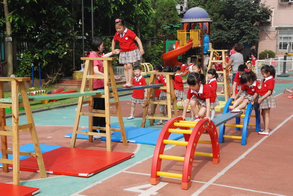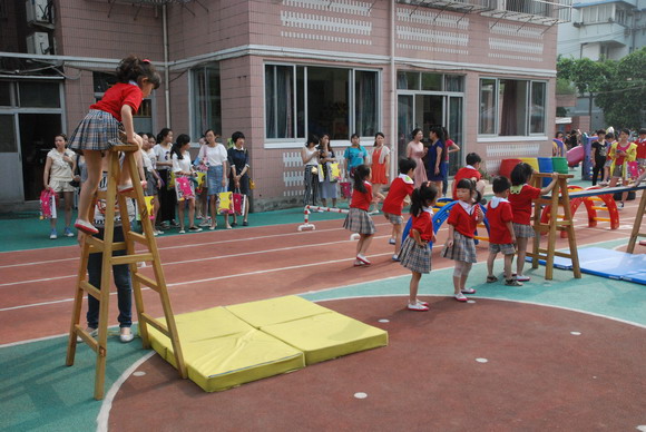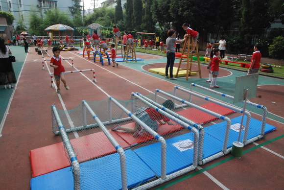 首先是孩子们进行户外区域的活动展示。所创设的区域有:球类区、蹦跳区、战壕区、滑行区、爬树区、感统区等共17种区域。我园“因地制宜”地创设富有创意的健身环境,“一材多用”的投入富有生活化的健身材料,让孩子在健身学习中体验快乐、感受自主、促进开放和发展全面。而后大家听取了我园园长助理朱老师就“阳光体育 快乐成长”的户外区域活动展示的汇报,并以常态化、实践性的活动例子向他们展示了“户外区域运动区”的亮点与特色。我们的常务副园长潘老师就“快乐英语,伴我成长——谈谈我园致力于幼儿英语特色教育”的汇报,从六个方面向大家详细讲解了我园是如何致力于特色教育,听得大家意犹未尽、赞叹我们优质的办学特色。现场我们的外籍教师LYUDMYLA向大家展示了一堂生动、轻松、愉快的英语课堂。她灵活多样的教学方法、生动丰富的肢体语言、逼真的情境教学深深吸引了孩子,也打动了现场所有的老师们。最后,第五片区的领导王老师,给我们这次活动给予了充分的肯定与高度的评价。她鼓励在做所有的片区姐妹园们要行动起来,学以致用。让我们共同研究,携手并进,共创美好的明天。