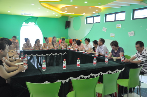 市妇联领导在心桥集团董事长徐炳兴、总裁陈蓉蓉和园长南卫平的陪同下参观了园区,并看望了部分老师及幼儿,与教师召开座谈会。市妇联领导、集团领导与教职员工围绕履行岗位职责和创新服务、幼儿园规范管理及今后发展方向等进行交流座谈,大家踊跃发言,畅所欲言,形成共识。在座谈会上,鲁爱民主席表达了对老师们的节日祝贺,提出市妇联幼儿园要在开展幼儿教育工作方面发挥引导示范作用,强调要关心重视教师的工资待遇,认真落实有关政策,充分调动教师的工作积极性,不断提升幼儿园的保教水平,并对幼儿园家长工作、安全工作都做出非常重要的指示,做到让孩子开心,让家长放心,让社会好评。王素芳部长做为温州市妇联实验幼儿园第一任园长,表达了对幼教工作的深切留恋,鼓励教师努力付出,为幼教事业做出自己的贡献。陈蓉蓉总裁表达了对市妇联领导关心的感谢,鼓励妇幼老师再接再厉,找出优势,弥补不足,做一个对社会有贡献的人。座谈会在欢乐融洽的气氛中进行,老师们深受鼓舞,纷纷表示要珍惜教师荣誉,发扬优良传统,不断创新,发奋进取,为幼教事业的蓬勃发展做出更大的贡献!