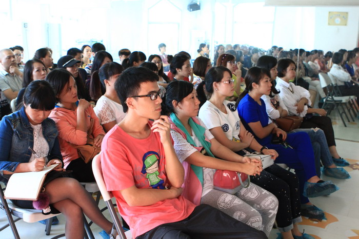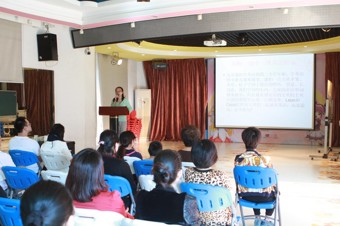 会上,各班英语教师就本班一学期的工作重点,英语教学的内容、各类英语活动的开展以及英语特色教育等向家长们做了详细的汇报,并根据幼儿发展及一日生活、英语学习情况,针对本班幼儿特点及共性与家长进行了互动与探讨。老师们用相机记录下孩子们在幼儿园快乐的一天,并以PPT的形式边播放边讲解,不仅让家长能够直观地了解孩子在园学习英语的真实情况,同时也使家长更进一步了解幼儿园的生活和老师的引导、教育方法。最后,家长们观摩了中教以及外教带来的英语课展示。