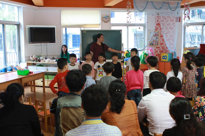 为了进一步加强幼儿园与家庭、教师与家长的密切联系,增进每一位家长对幼儿园英语教学的全面了解,创设和谐的英语教学环境,真正达到家园携手共同培养孩子的目标,2014年10月20日至10月27日,新桥一幼开展了为期一周的小、中、大班的英语教学课堂开放活动。