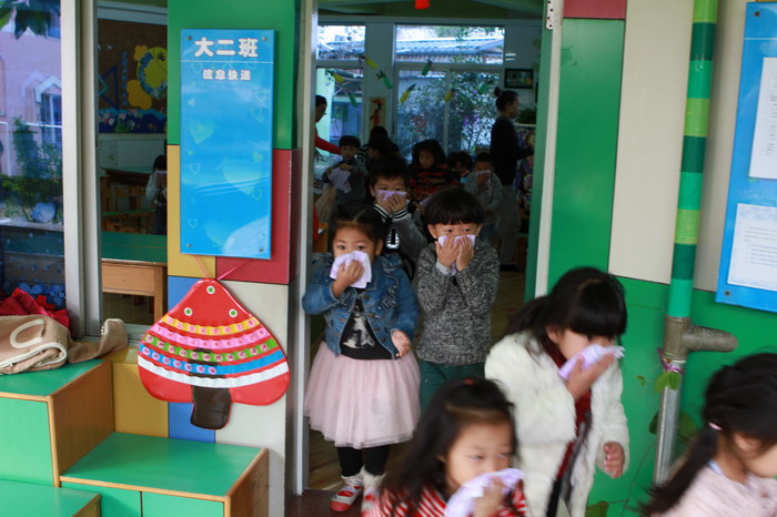 2014年11月18日下午3:00时,随着刺耳的警报声响起,新桥一幼各班教师迅速、有序地带领幼儿用湿毛巾捂住口鼻、弯下身体,有序地按疏散路线撤离到安全地点,用时只有三分钟。新桥一幼开展消防演习活动。结束后,干丹萍老师对此次演习进行了知识问答并作了演习总结,对教师与孩子们积极参加消防疏散演练给予赞赏。 通过演习活动,让师生们懂得发生火灾后如何进行自救、如何逃走、如何拨打119电话报警,更懂得了面对突然发生的重大事故要沉着冷静,紧急撤离。安全重于泰山,在今后的教学中,我园进一步将安全教育渗透到日常教学中,为孩子的安全创造良好的环境。