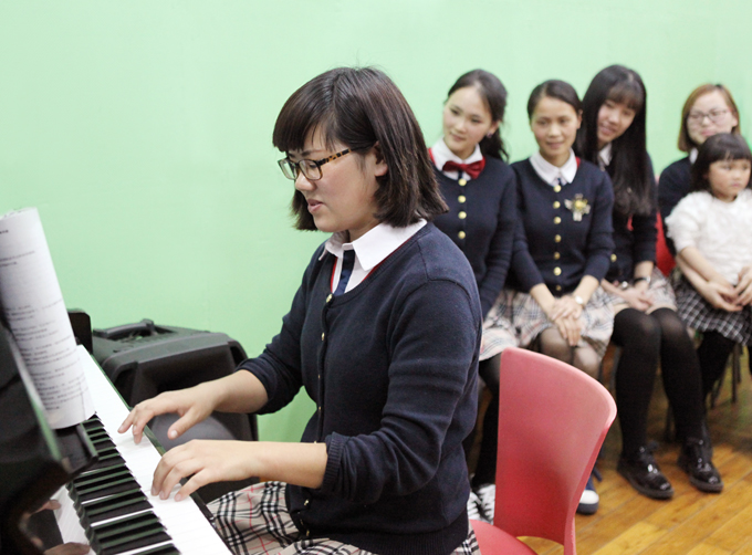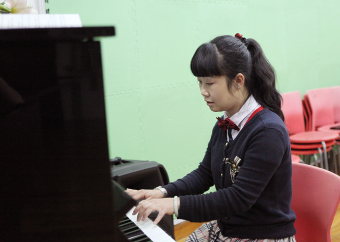 比赛开始了,教师们一个接着一个在琴前展示着自己的弹奏和演唱风采,纷纷发挥出了自己的最好水平,其中几位教师弹奏自然流畅、演唱深情并茂,赢得了在座老师们的阵阵掌声。