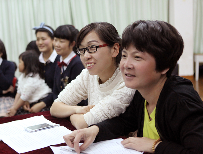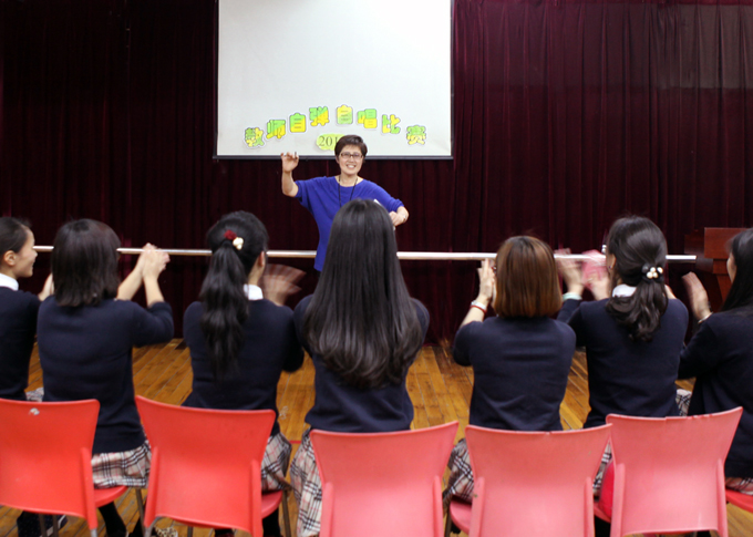 为缓解教师紧张的情绪,叶老师于比赛之前指挥大家唱起了欢快的幼儿歌曲
