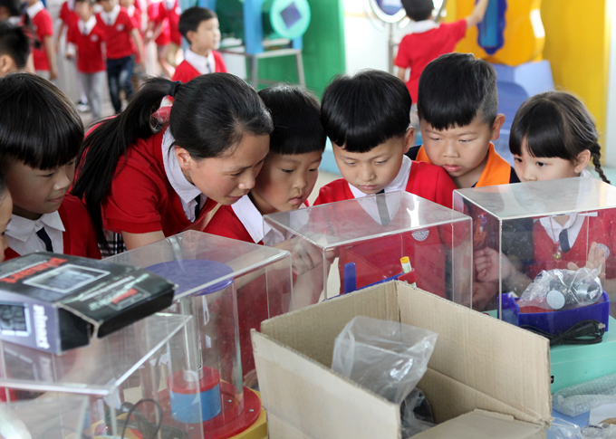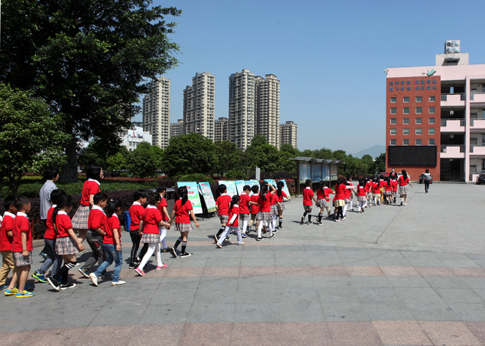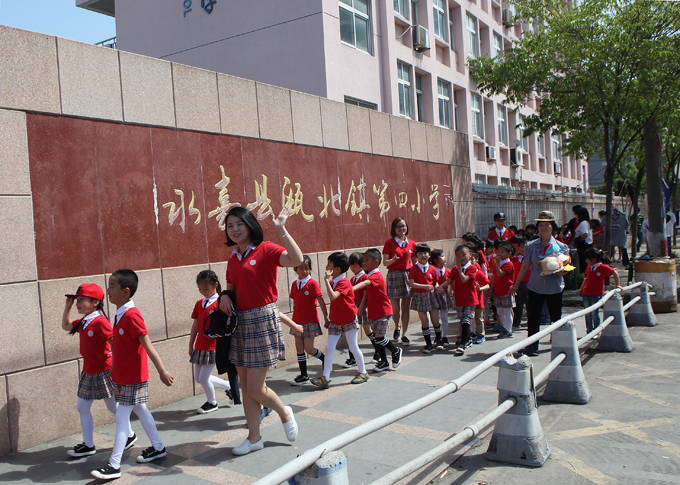 沐浴着灿烂的阳光,小朋友们兴奋地手拉手、排列着整齐的队伍来到了瓯北第四小学,刚进校门就被宽敞的操场、高大的教学楼吸引了,整个校园里安安静静,偶尔听到朗朗的读书声。在学校教导主人的引领下,小朋友们认真听取了小学生活的介绍,参观了多媒体教室、音乐室、图书室、微机室、实验室、教室等等,校园里的每个地方、每件事情对他们来说都是新鲜的。