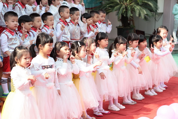 各班幼儿身着美丽的服装,精神饱满地站在合唱台上,以不同的表现形式进行唱咏演出。大班幼儿合唱时表现得精神抖擞,他们伴着舞蹈,情绪激昂向上;中班幼儿合唱时表现得生动活泼,突出表演的优美可爱;小班幼儿的表演充满稚气,流露出独特的天真烂漫;小小班幼儿的表演质朴纯真,闪耀着希望的光芒,孩子们精彩自如的表演、优美和谐的歌声获得了台下阵阵的掌声。他们稚嫩、优美的歌声,真情、到位的表演更感染了在场的每一个人。
