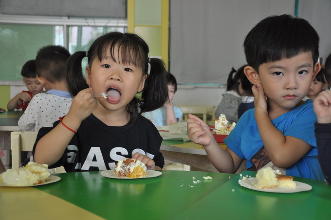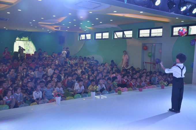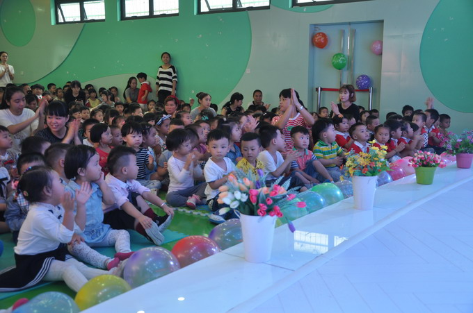 国庆节是我国重大的节日,这一天对于我们来说是非常具有纪念意义的一天,因为这一天是无数先烈们用牺牲和奉献换来的,是他们的不懈努力开创了中华民族的新纪元,也是开创了属于我们自己的美好幸福新生活。为了让幼儿了解并记住这一重要的日子,2015年9月30日温州市妇联实验幼儿园举行了庆国庆活动。虽然这天天公并不作美,下起来了阵阵细雨,但是老师们已早早地来到幼儿园,为我们的节日布置起漂亮的舞台。孩子们在9点之前已经井然有序地进入多功能厅期待着与祖国妈妈同庆生的时刻了。主持人宣布活动开始,嘹亮的国歌声随即响起,五星红旗在护旗手的护送下绕场一周。之后,是幼儿代表焦雅纯,黄祉绚和教师代表胡素燕讲话。另外南园长为师生们带来的富有爱国之情的说辞,句句深深打动了师生们的心灵。舞台上,孩子们精彩的表演增添了节日的气氛,外教Coco,Michelle和孩子们齐唱生日歌把活动推向了高潮,切蛋糕、送礼物,孩子们脸上的笑容表达了他们内心的快乐。是啊,快乐的日子是难忘的,与祖国妈妈同生日是幸福的,更是自豪的。