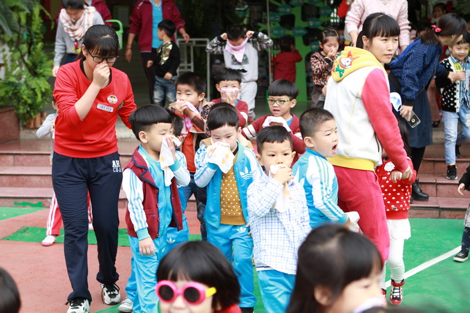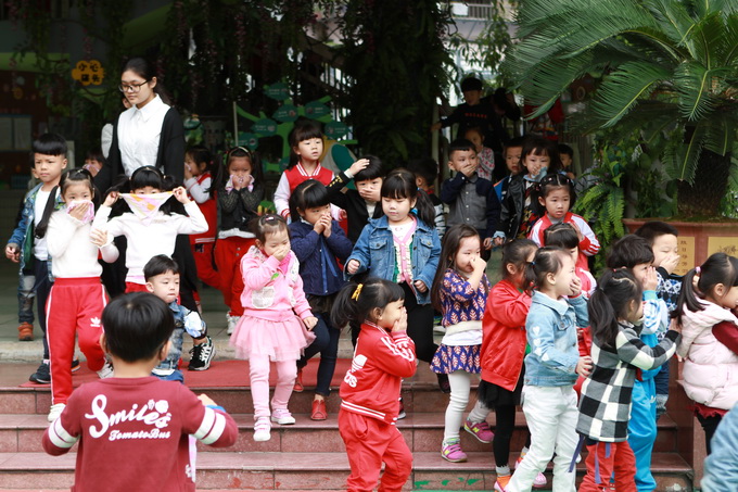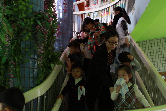 11月10日上午10:00,孩子们有的在操场、有的在后花园、有的在楼顶、有的在教室,各自正有序地开展活动。在大家毫无防备的情况下,警报响起,孩子们在教师的带领下,下蹲、并用湿毛巾捂住鼻子,随着安全通道路线紧急疏散到大操场。各班老师迅速就位维持好各班幼儿的次序,并快速清点幼儿人数,整个疏散演习过程井然有序,大概用时3分钟,取得了圆满的成功。此次消防演练,增强了全体师生的消防意识,提高了自护自救能力,以及有效、快速疏散的能力。