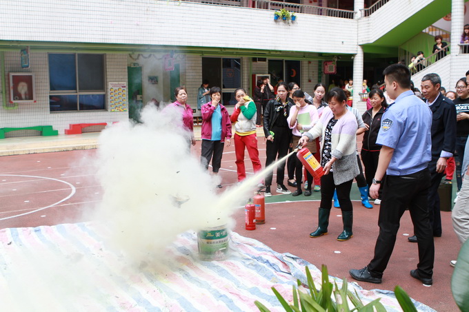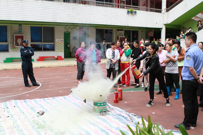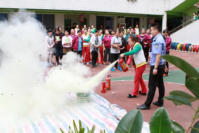 演习后,中午我们又组织了全体教职工开展消防安全知识讲座。政安防火培训中心童教官通过一个个生动形象的火灾案例,从防火、灭火、逃生、自救等方面深入浅出地介绍了火灾的形成过程,火场中易出现的延误逃生时机的误区、自救逃生的方法以及灭火器的种类和操作使用方法等一系列防火安全知识。我们的教职员工还进行了实地的灭火演习,使大家深入浅出的掌握灭火器的正确操作方法,面对紧急情况,不慌张、不惧怕,沉着冷静地处理应急突发事故。此次活动真正起到了普及消防知识、提高消防安全认识、增强防火安全意识的作用。