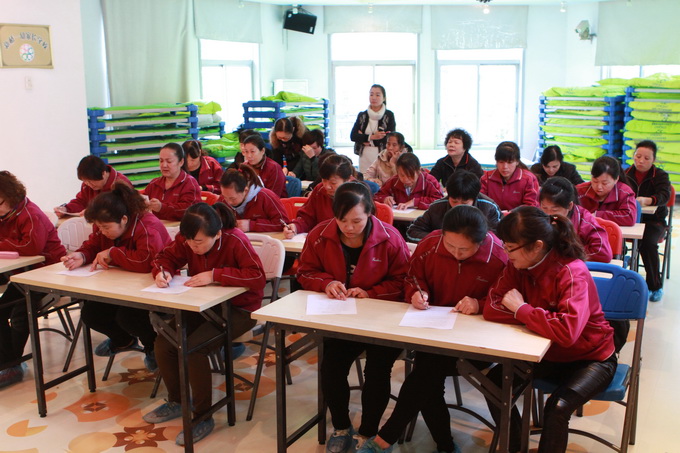 本次主要以理论考核与操作考核两部分相结合,理论考核为日常基本的保育知识,操作考核为擦桌子、摆碗筷、叠被子等常规技能。为了这次考核的活动,我们从试卷、评分标准到评委、监考官都作了精心的准备。在现场,保育员们操作规范到位,出色的完成好本次考核任务。评委们对每一个保育员有一个客观、公正、全面的评价。