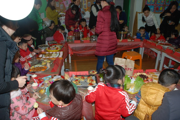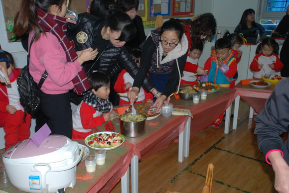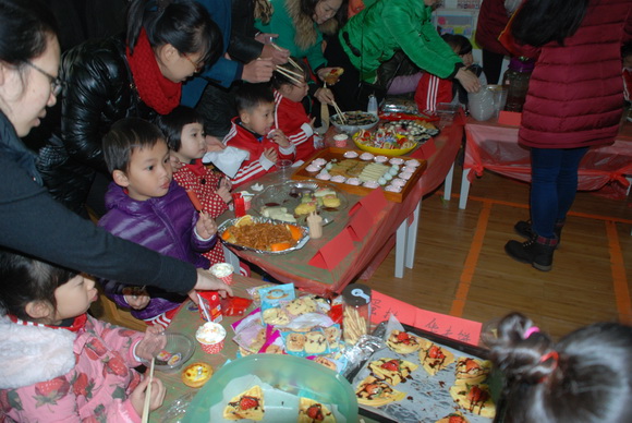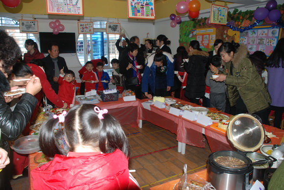在元旦佳节到来之际,我们新桥一幼分园迎来了“庆元旦亲子美食节”活动。2015年12月31日上午,我们分园内彩旗飘飘,各个场所都装扮一新,处处呈现出一派热闹、喜庆的场景。