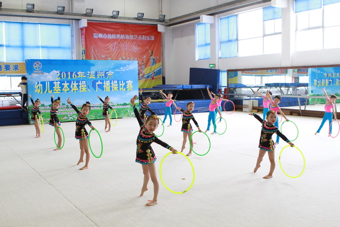 2016年温州市幼儿基本体操、广播操比赛于6月5在温州市体校心桥体操俱乐部(九山游泳馆三楼)圆满落幕,来自温州各地区的代表队进行了激烈的角逐。