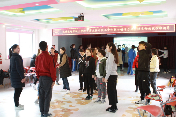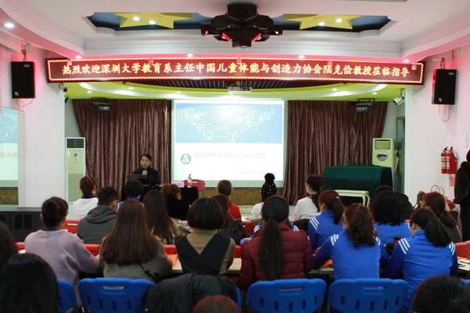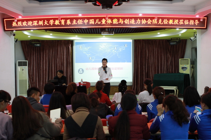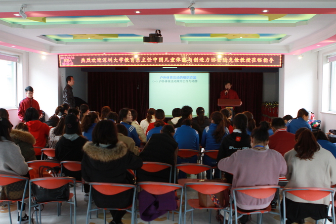 为了做好我园的特色课题《幼儿基本体操在一日活动中渗透的实践研究》,本学期围绕着此课题我们做好了大量工作,为了让我们的老师掌握相应的体育技能,继上次的新《指南》和《纲要》的学习,3月16至3月19日,我们邀请了深圳大学教育系主任、中国儿童体能与创造力研究协会会长陆克俭教授及他的团队来园为老师们做专业的培训。