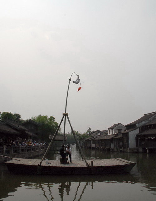 令人心悬的"撑高杆船"表演