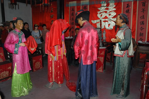 展示江南地區舊時的民情風俗--古代婚礼一掠(蜡像人)