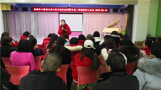 开门迎春喜满园,新年又是新气象。2019年2月12日(正月初八)伴着新年的晨曦,鹿城区心桥幼儿园上陡门园区的全体教职工,满怀激情走进新学期,迎接新一轮挑战。今年的开门炮和往年不一样,全体教职工在噼噼啪啪的电子炮声中互送祝福、欢快愉悦,一样热闹,一样喜庆。我园全体教职员工召开了开学工作会议,全面部署了新学期幼儿园的各项工作。会议中,南卫平园长对新学期的工作计划进行明确指示,随后杨样、胡晓华、刘茜副园长对本学期的开学工作进行了细致的规划。
