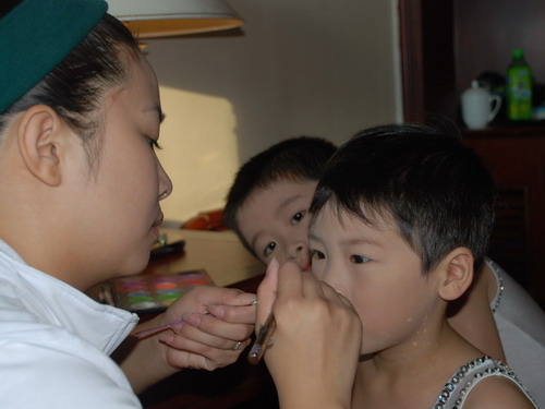 老师为我们精心化妆.