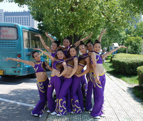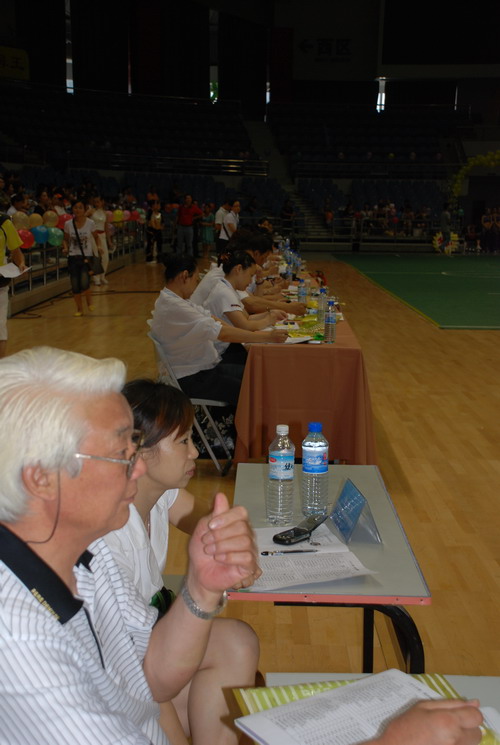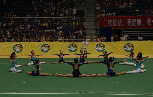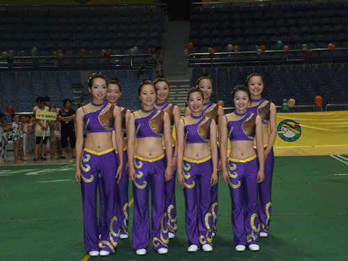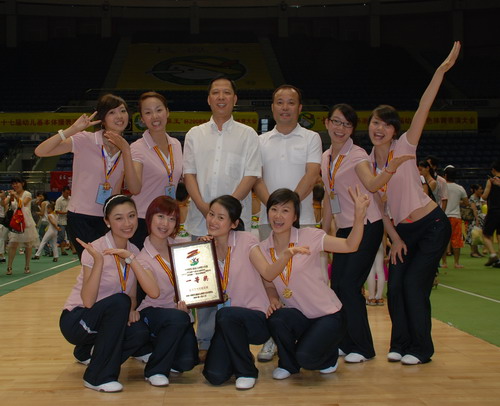 我们集团的三支参赛队(体操甲队、乙队、教师队)