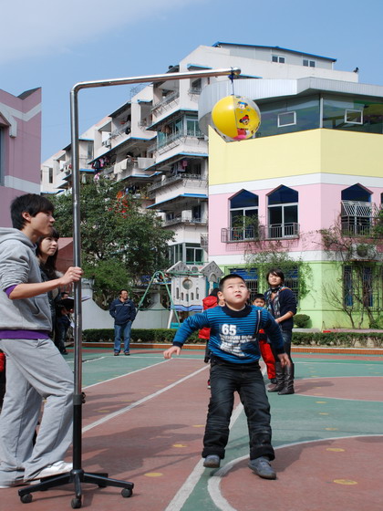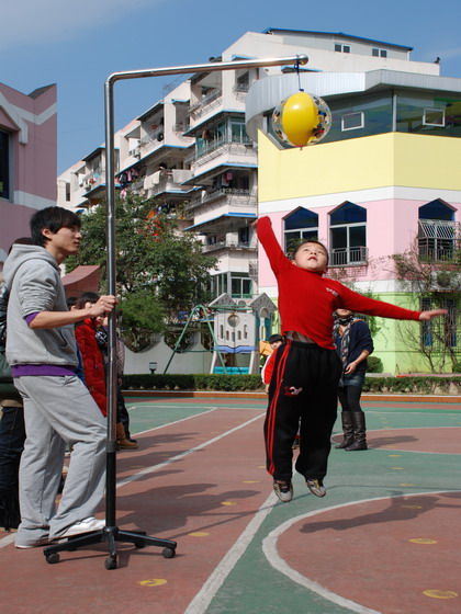 2月20日上午,在新桥一幼的院子里传来了一阵又一阵响亮的加油声。瞧,这里正在举行心桥宝贝吉尼斯跳高总决赛。