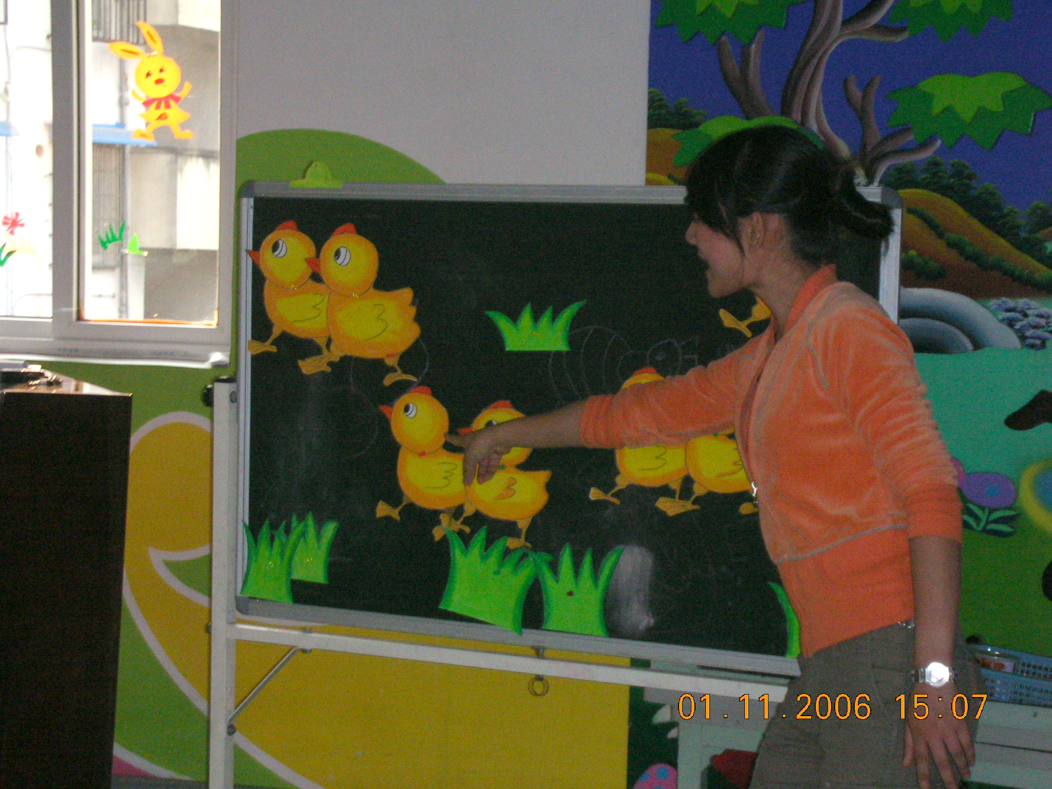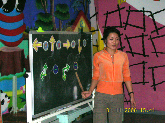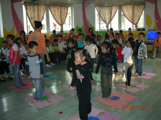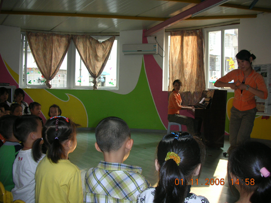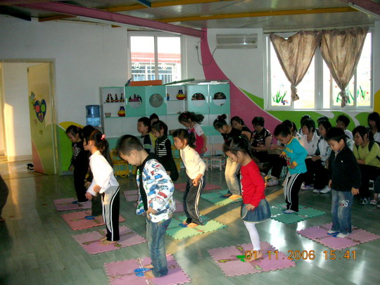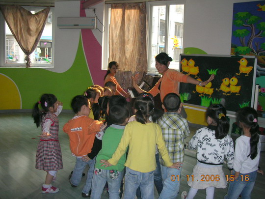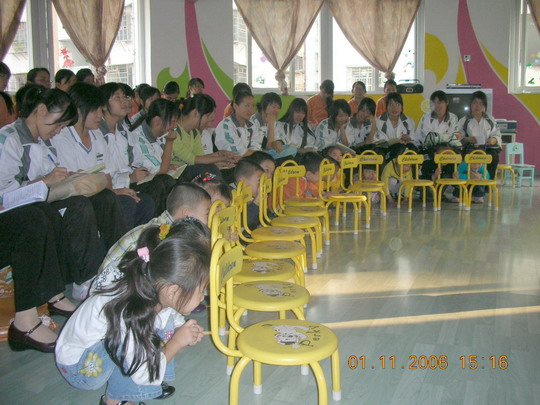 本学期,我园教师承担了温州第十八中学幼师班《幼儿园活动教程》的教学活动,并安排她们隔周三下午来园实地实践。2006年11月1日下午,是我园第三次接待幼师班学生听课活动,这次展示的是两节艺术领域的课程,由林晓霞老师主教的中班音乐活动《给小鸡取名》和张利让老师主教的大班韵律活动《快乐的脚步》。两位教师以幼儿为主体,师生互动的教学理念、鲜明形象的教具、亲切严谨的语言、优美的舞姿、游戏化的情景,使幼儿在快乐、轻松的活动过程中学会了歌唱,学会了舞蹈,给听课的老师和全体幼师生一个既深刻又直观的现场指导,受到听课者的好评。