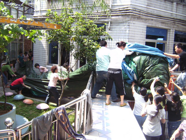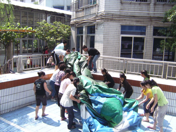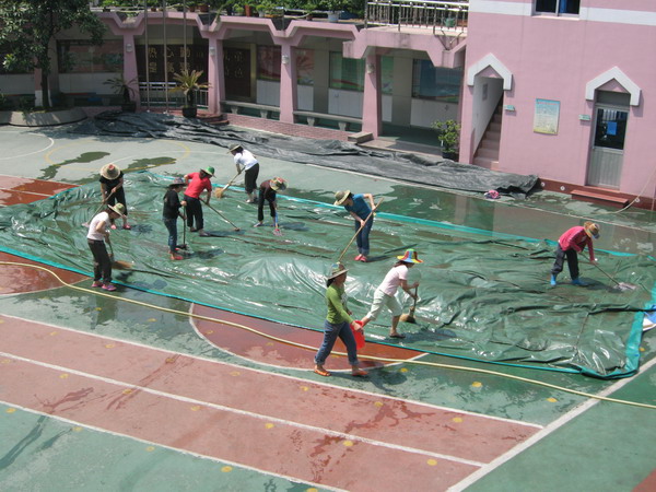 讲座之后 保育员阿姨与司机叔叔一起清洗“淘气堡”