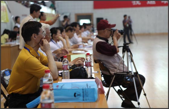 16日上午,到比赛场馆走场.(说是走场,其实齐刷刷地坐满了裁判,在打印象分)