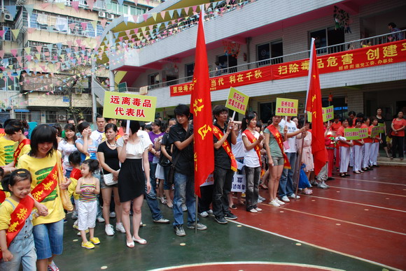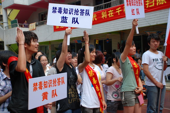 活动首先在新桥一幼中二班亲子操和前花社区腰鼓队精彩的表演中拉开序幕。接着由温州科技职业学院大一、大二的学生组成红黄蓝队开始了别开生面的禁毒知识抢答。在激烈的抢答热身之后,“铲除毒品(三人二足走)”、“消灭毒品踩气球”、“黑猫警长缉毒记”、“拒绝毒品足式保龄”、“远离毒品旧貌换新颜”等游戏纷纷上场。人们通过玩各种趣味游戏体会到毒品的危害性,誓“远离毒品、珍爱生命”。