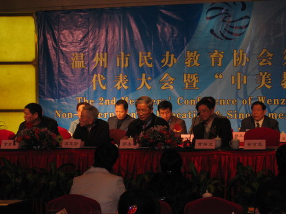 2006年12月5日、6日,温州市民办协会第二届会员代表大会暨“中美教育论坛”会在温州市国际大酒店五楼多功能厅举行,参加本次会议的领导有中国教育协会常务副会长郭永福,国家总督学陶西平,浙江省民办教育协会会长黄新茂,副市长钱成良,温州市教育局长林显平,副局长吴恕成,市政协主席高忠勋,原宣传部部长林可夫,还有CITA委员会执行主任Chloe Randolph Sinisi博士,Donnie D.Petry博士(全国私立学校认证委员会执行主任),Donald Leyton Enz博士(美国中北部院校委员会执行主任)等有关领导参加了会议。