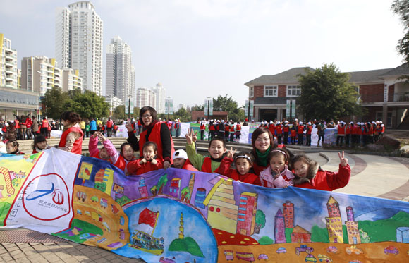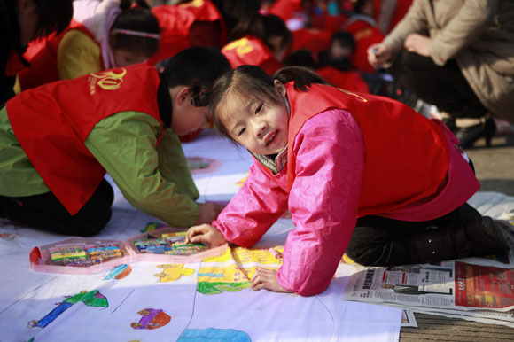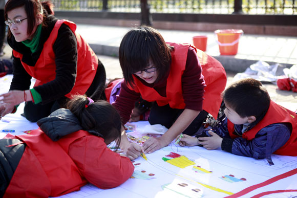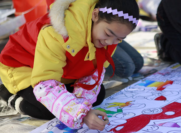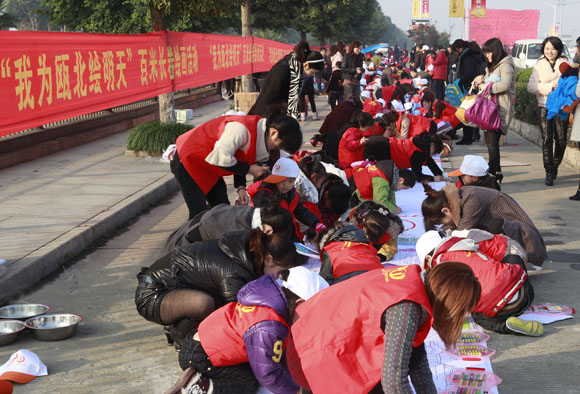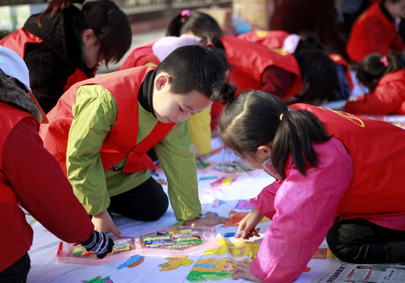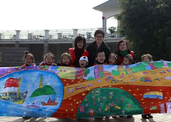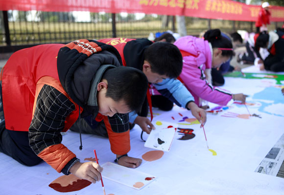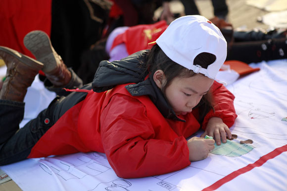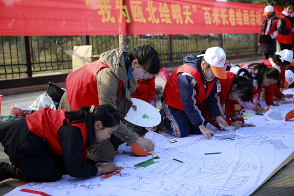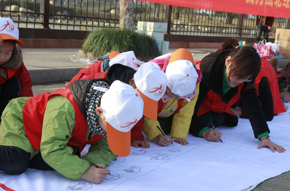 百米长卷现场展示活动。100余名小学、幼儿园的小朋友在老师