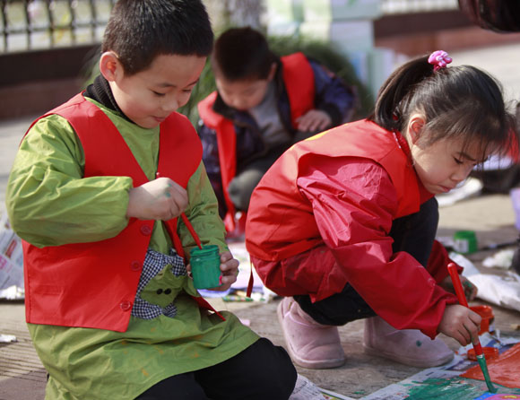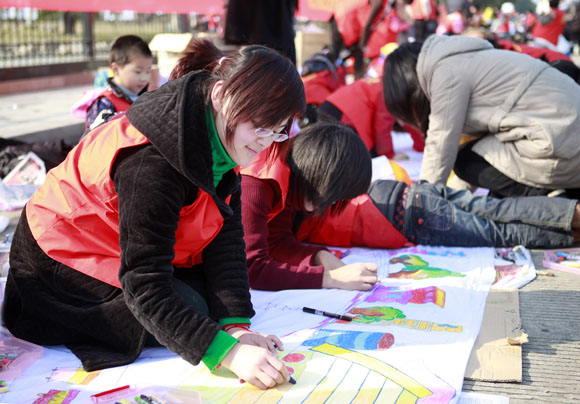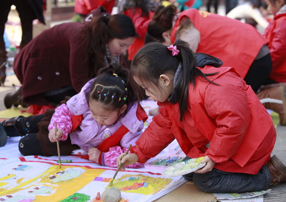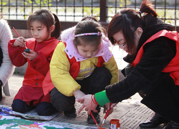 红都幼儿园小朋友参加百米长卷现场画 发表时间:2009/12/18 16:58:00