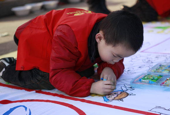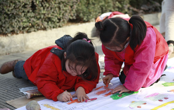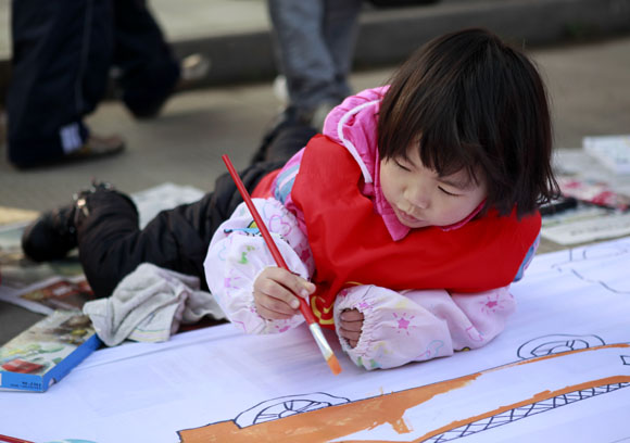 红都幼儿园小朋友参加百米长卷现场绘画活动
