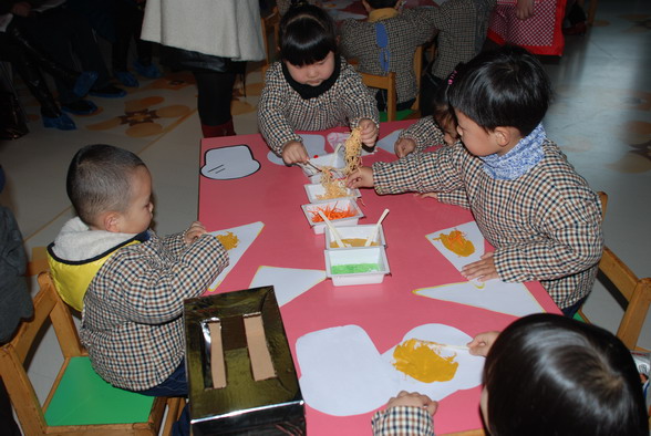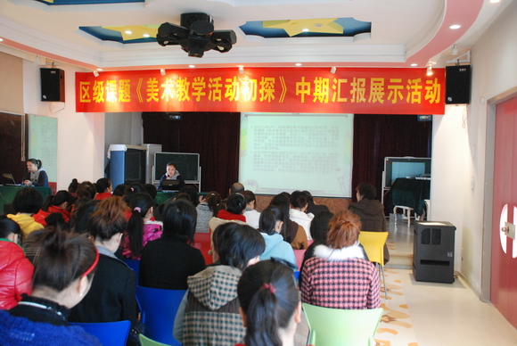 经瓯海区教师发展中心的批准,我园的课题《美术教学活动初探》被立项为2009年瓯海区教科规划立项课题,历经了一个学期的努力,课题已到中期,为使课题更有针对性,有效地开展。1月20日上午我们举行了课题的中期汇报教学活动展示暨新桥片的园本培训共有85位教师参与此次活动,同时我们还邀请了瓯海区教师发展中心科研部主任郑道春、科研部小学(学期教育)负责人韩紫微老师、教育局幼教干部刘胜曼老师、教师发展中心幼教研训员贾松菊等专家来园指导、引领。